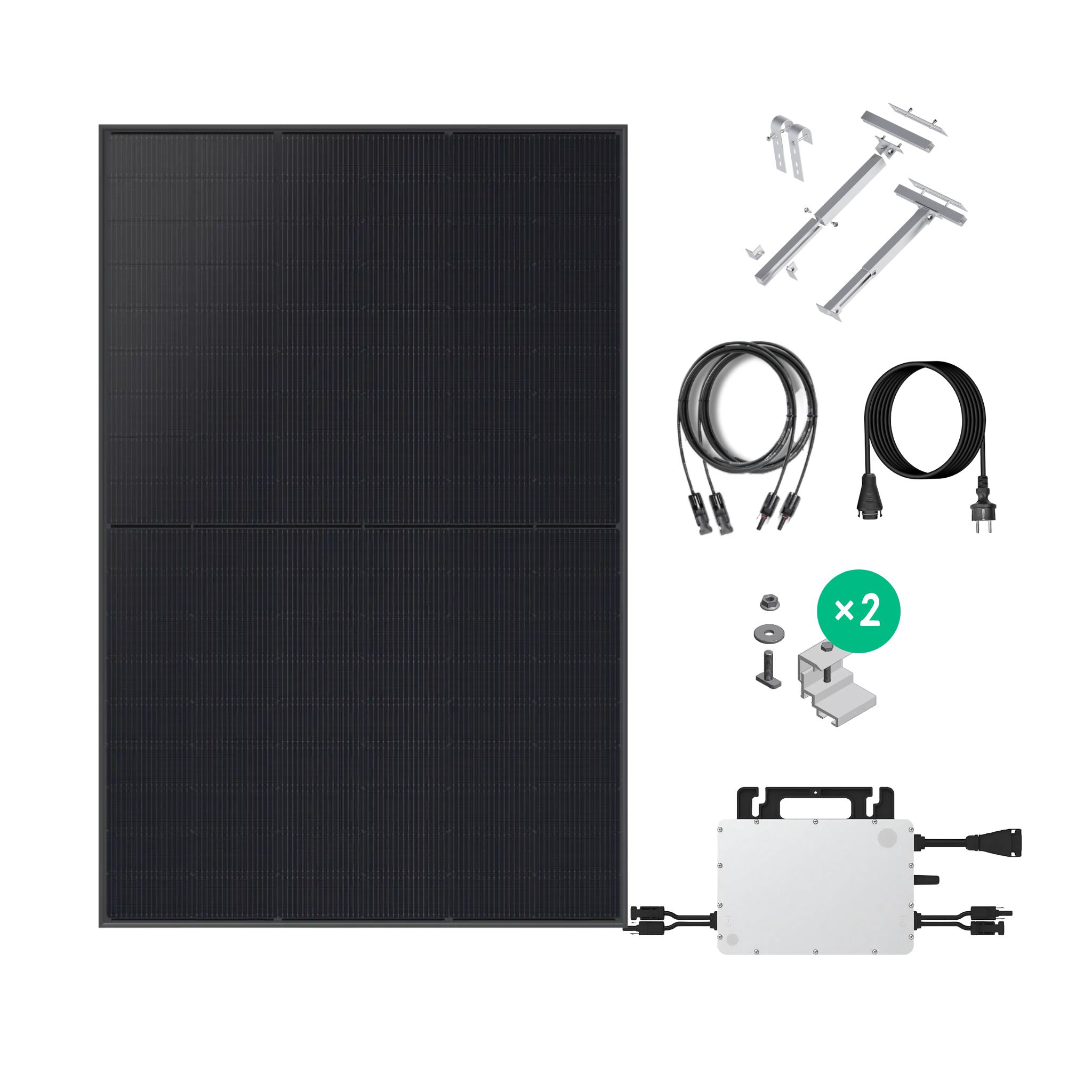 Alle Komponenten, die für den Aufbau und Anschluss des Kraftwerks gebraucht werden, sind im Set mit enthalten und werden direkt zu dir nach Hause geliefert. Kein Herumschlagen mit fehlenden Schrauben oder passendem Kabel! Solltest du doch einmal etwas brauchen, ist unser erfahrenes Support-Team immer für dich da.